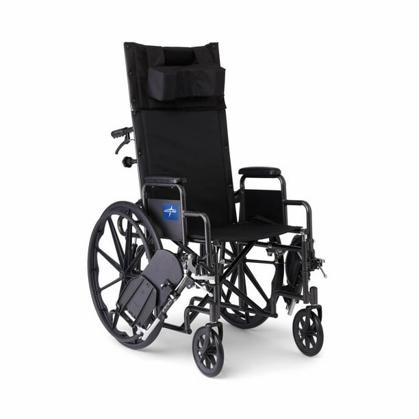 Medline Reclining Wheelchair With 18 Wheels Elevating Leg Rests Supports Up To 300 Lbs Black Walmart Com